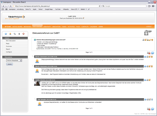 "The discussion forum of teamspace helps us to discuss topics in a structured way
